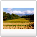 今将に紅葉する大樹の華麗な姿を群青色の空間が圧倒的である。その奥に静かに並ぶ森と八ヶ岳の山々、此処には時が有り、命の喜びがある。紅葉の赤と青空のグラデーションが見事。その下の山々と雲のバランスも程良い。